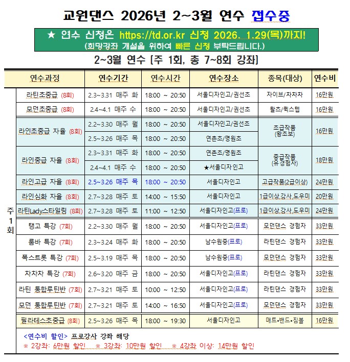 1) '한국교원댄스스포츠협회'이 회원에게 서비스를 제공할 수 있는 서비스 투자기반의 일부는 광고게재를 통한 수익으로부터 나옵니다. 회원은 서비스 이용시 노출되는 광고게재에 대해 동의합니다.